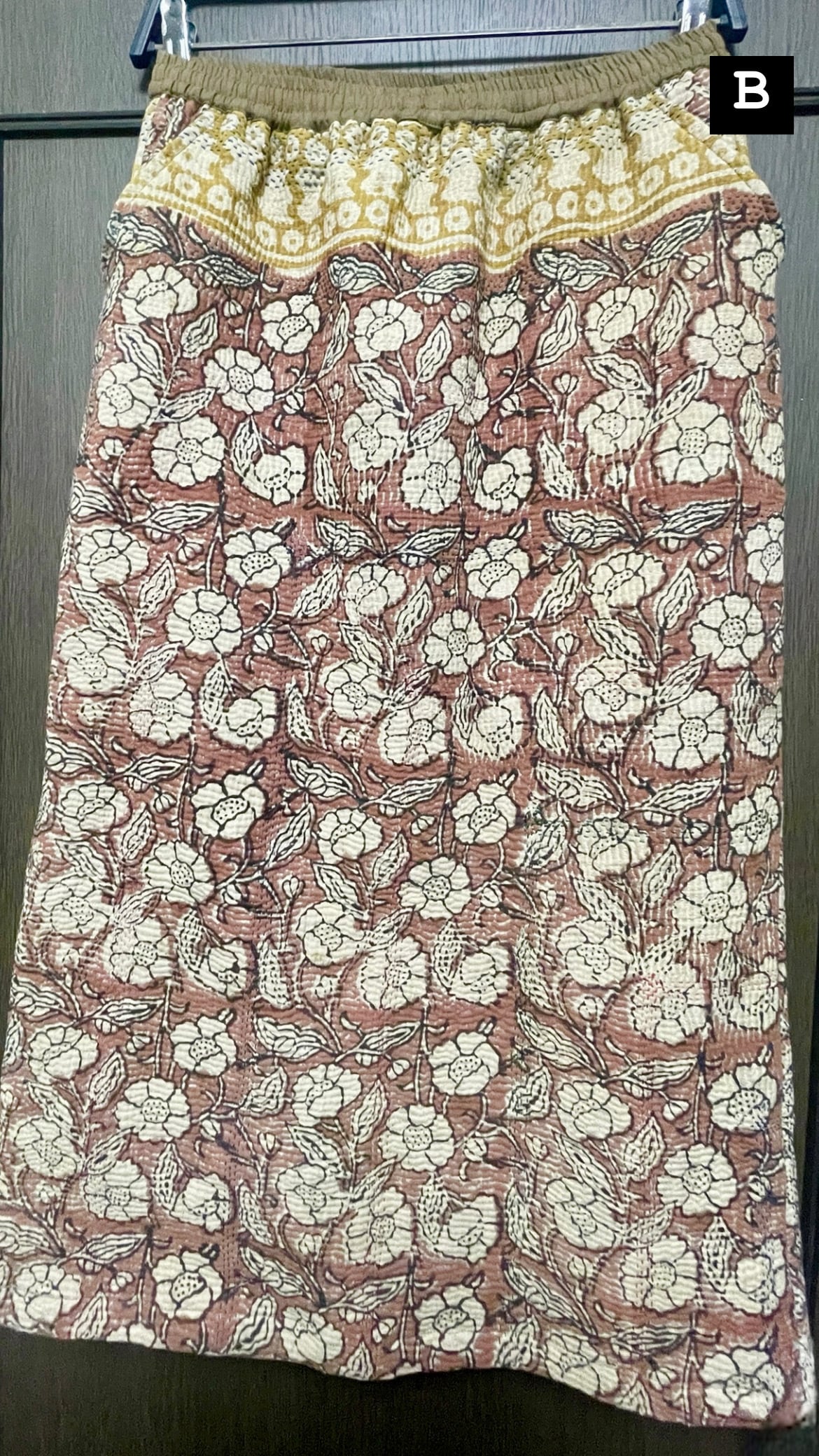 手作業で丁寧に仕立てられたカンタキルトのペンシルスカートが、優しい魅力を加えます!