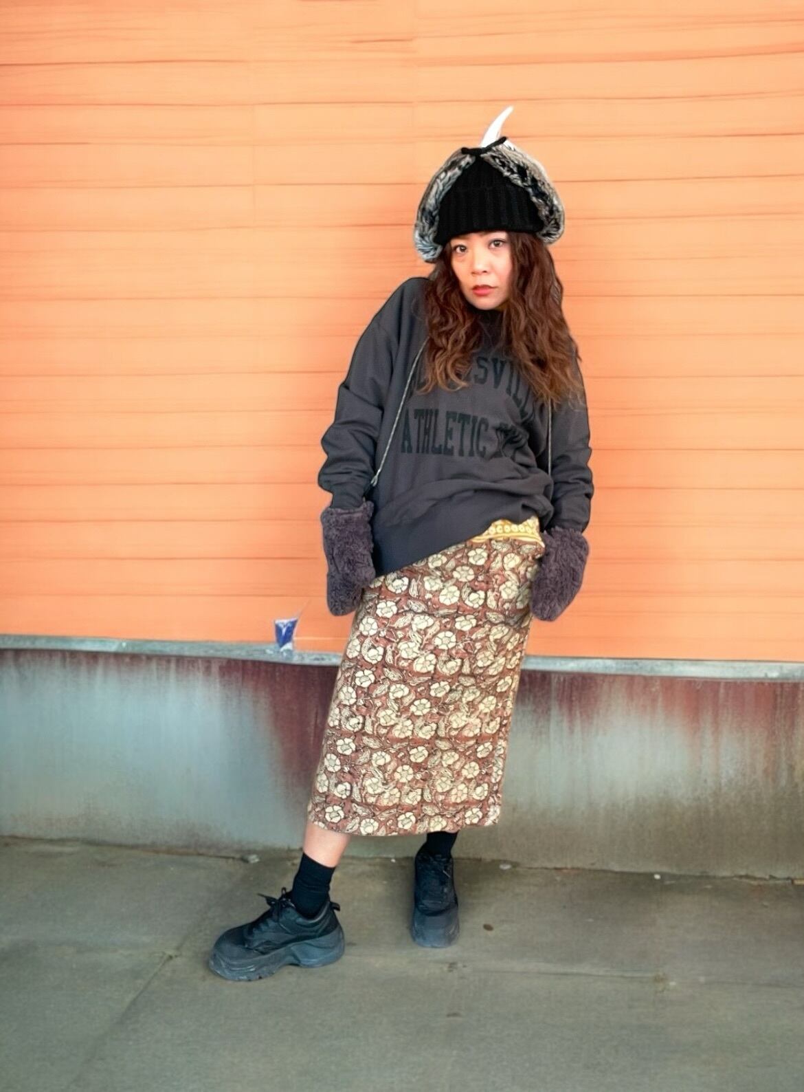 このベージュブラウンにフラワー柄が施されたスカートは、ナチュラルな色合いがコーディネートに温かみを与え、心を豊かにしてくれるよう✨