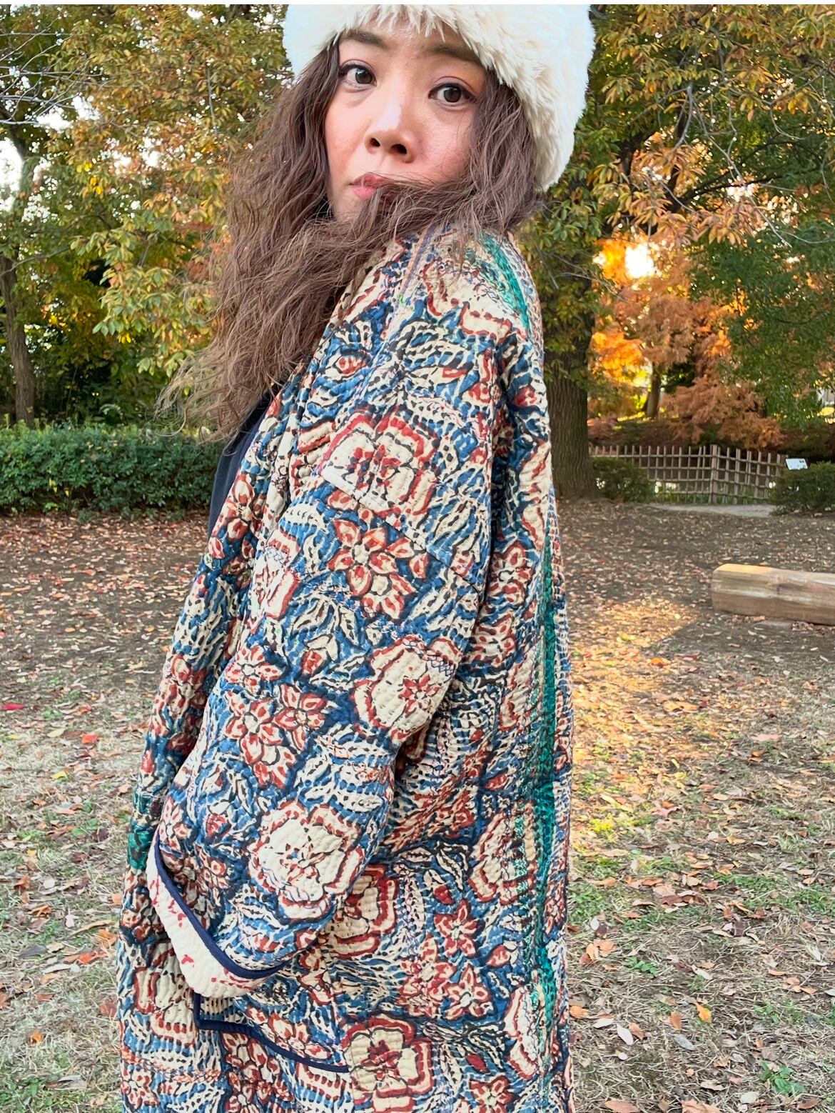 しっかりとした厚地のカンタキルトは、手仕事ならではの温もりが感じられ、愛着の湧く一着。