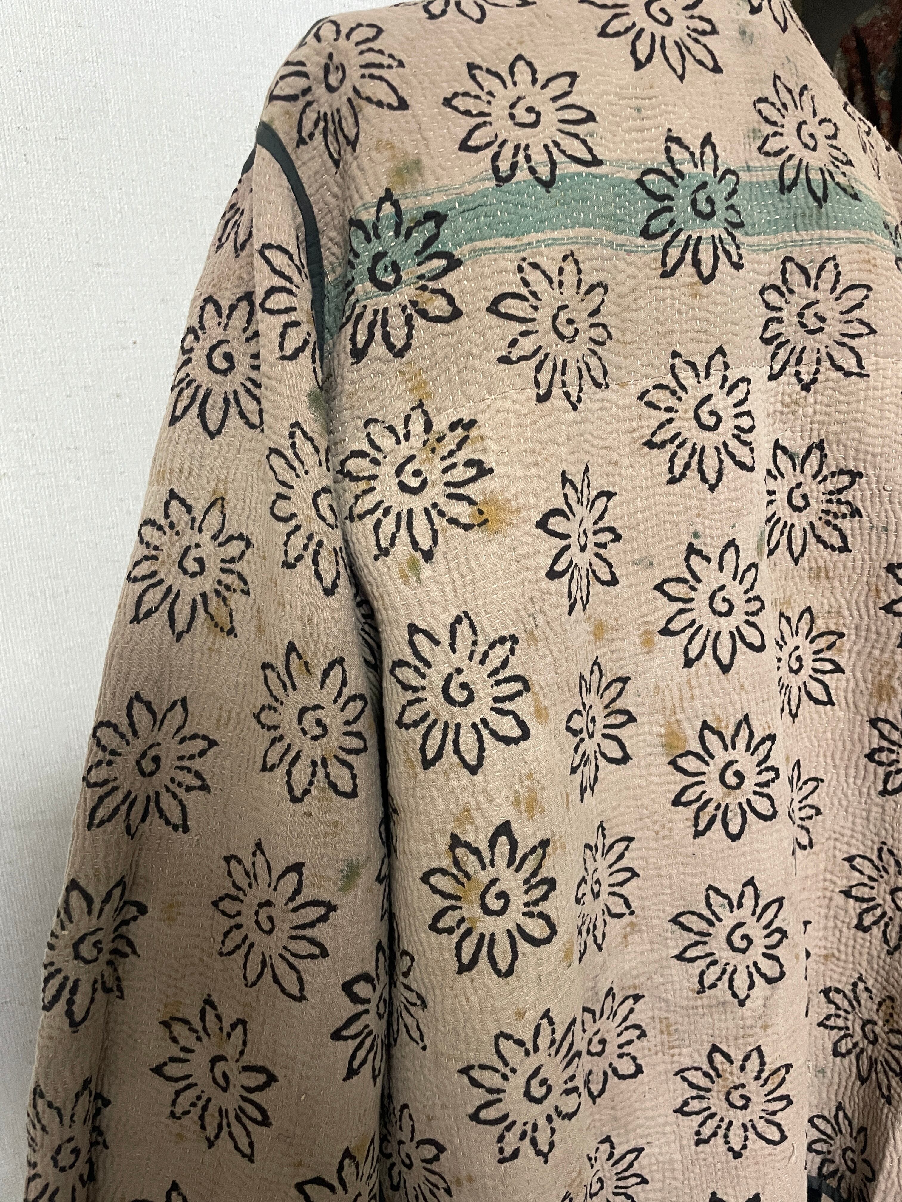 生成りがかったヴィンテージカンタキルトにさりげないプリントが施されていて、とても味のある1枚に仕上がっています。